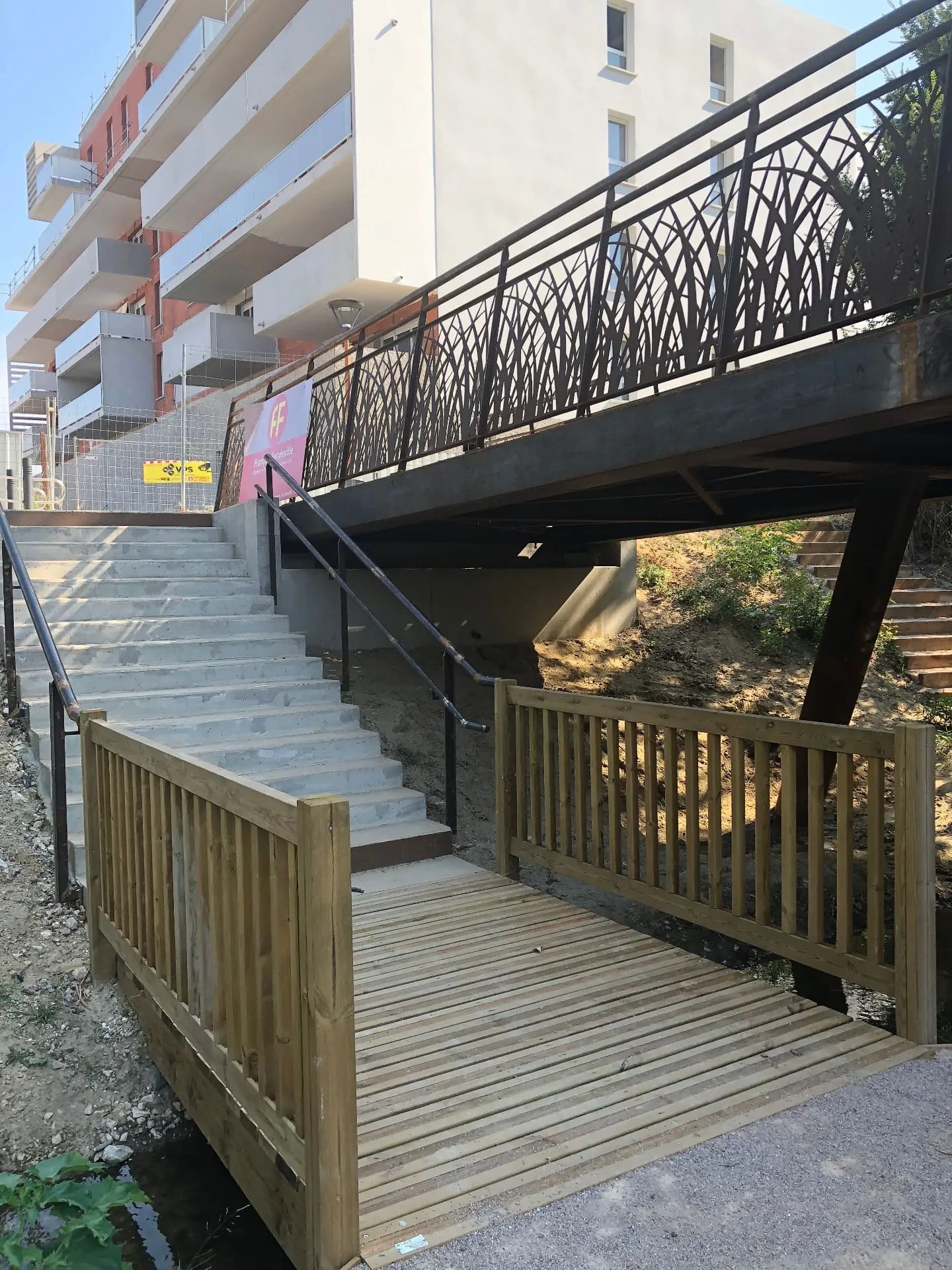 Uno de los puntos más delicados fue planificar el montaje de la estructura sobre el cauce del río, lo que requería soluciones técnicas específicas. A ello se sumaba la necesidad de un diseño duradero y con identidad propia, que respetara el entorno y aportara valor estético al paisaje de Perpiñán.